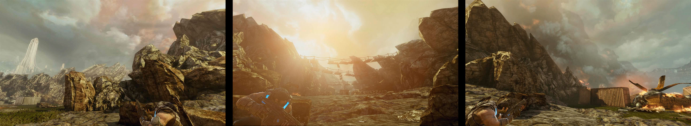 Playing the Apocalypse is a triptych of digital 'paintings' that reflects on how the Book of Revelation's apocalyptic visions and archetypes manifest in today's digital pop culture. The artwork is exclusively created from in-game footage (of the artist playing) taken from the immensely popular third-person shooter Gears of War (Epic Games, 2006-11). The game's setting – a once beautiful but now ashen world called Sera that is home to humanity’s last survivors – is used to stage a set of scenic compositions that are reminiscent of the English Romantic painter John Martin's (UK, 1789-1854) apocalyptic landscapes, such as The Destruction of Sodom and Gomorrah (1852) and The Great Day of His Wrath (1851-53). The work considers the ways in which Revelation has shaped the aesthetics and narratives of such imaginary worlds and our quests to 'win' salvation for humankind that we strive to enact within them.