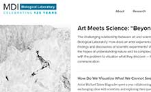 The challenging relationship between art and science is the basis for the «Art Meets Science» program at MDI Biological Laboratory. How does an artist experience the scientific process? How does the artistic mind use the findings and discoveries of scientific experiments? Artists and scientists strive to grasp the world around us, with the hopes of understanding nature and its complex patterns and mechanisms. Both scientists and artists grapple with the problem to visualize what they discover—how to bridge the gap between knowledge and communication.