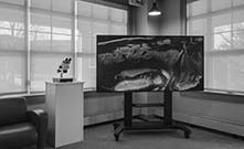 The focus of the exhibition is two newly commissioned artworks that have been produced using the leading-edge systems of the Laboratory's Light Microscopy Facility. Each work is generated from actual scientific research data that has been transformed using Artificial Intelligence (AI) models and techniques derived from contemporary digital arts practice. These aesthetic processes render spatial and temporal details that extend beyond the hard limits of traditional imaging technologies, allowing viewers to peer beyond the horizons offered by even today's most advanced microscopes.