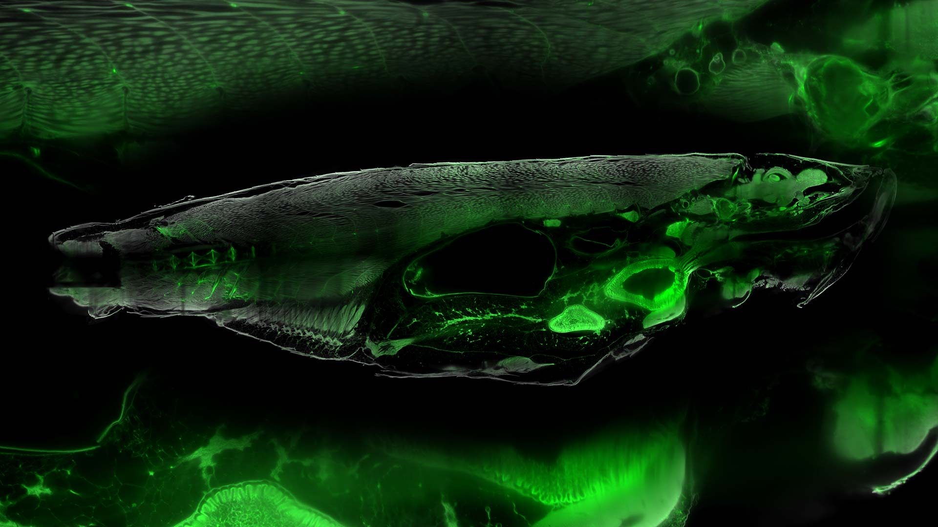 Emily Burke [ MDIBL project development-coordination ] . Light Microscopy Facility, MDIBL [ research infrastructure ] . Dr Prayag Murawala [ MDIBL host laboratory (Casper Zebrafish) ] . Jerilyn Bowers [ MDIBL project support ]. Frederick Bever [ MDIBL project pr ] . Rebecca Woods [ MDIBL exhibition production ] . Roy McMorran & Tom Rush [ MDIBL exhibition support ] . Emma Puente [ logistics support ] . Dr Aaron Rosen [ curatorial consultation ]